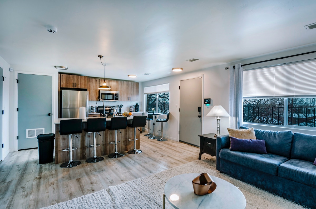 平均评分 4.75 分(满分 5 分),共 4 条评价明亮的2卧室盐湖城公寓,带热水浴缸和停车位