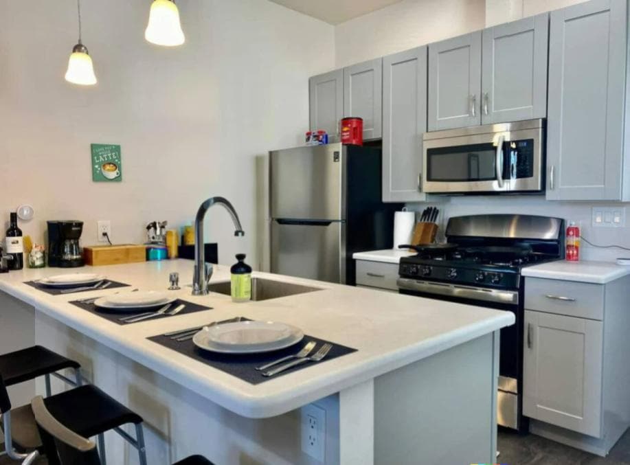 Your family will be close to everything when you stay at this centrally-located gem. Less than 3 miles from beautiful hiking trails, and even closer to city restaurants and shopping. Or 20 miles to world class ski resorts and awesome reservoirs. Or stay in and enjoy the comforts of home, including a large kitchen with an enormous quartz island and countertops, beautiful cabinets, and full appliances. Your own private parking, entrance, and washer and dryer.
