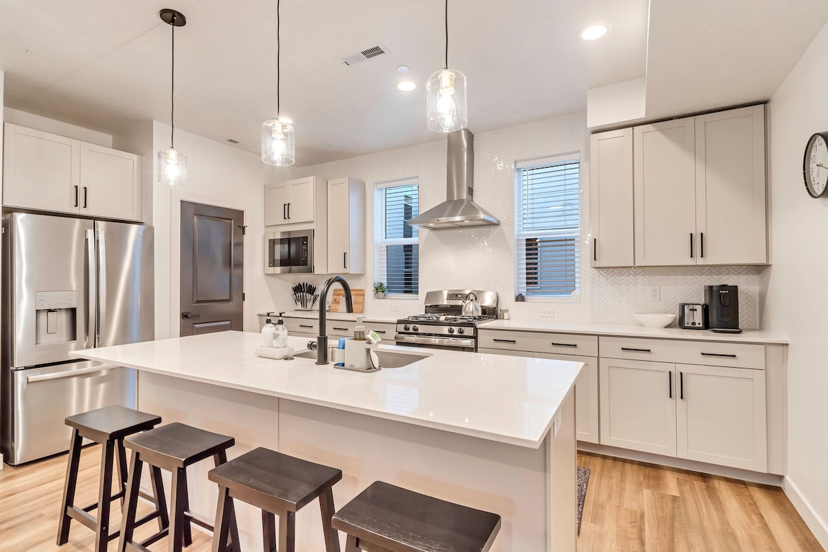 Welcome to our new, clean, spacious townhome built in 2019 with private garage parking, high-speed WiFi, memory foam mattresses, free washer/dryer, and high-end furniture from Restoration Hardware and West Elm. Located just two blocks from downtown in the tree-lined Capitol Hill neighborhood, you will be close enough to walk to the key attractions but secluded from the bustle of being right downtown. Last minute bookings accepted; locals must message first. Contactless check-in is required.
