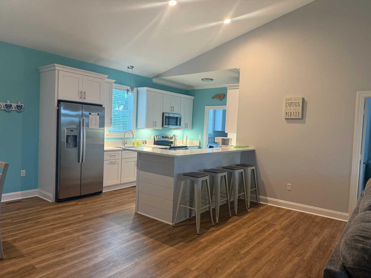 Welcome to The Gypsy Gull! This is a great home for your next vacation getaway. A cozy farmhouse style home in the heart of quaint Harkers Island, NC. Just a short walk to The Harkers Island Fishing Center and the local’s favorite restaurant, The Fish Hook Grill. Completely fenced in yard with plenty of room for kids to play and pups to roam. Rainy days are no problem, enjoy playing Ping Pong and Foos Ball, or just relaxing on the screened porch of the spacious garage/game room.