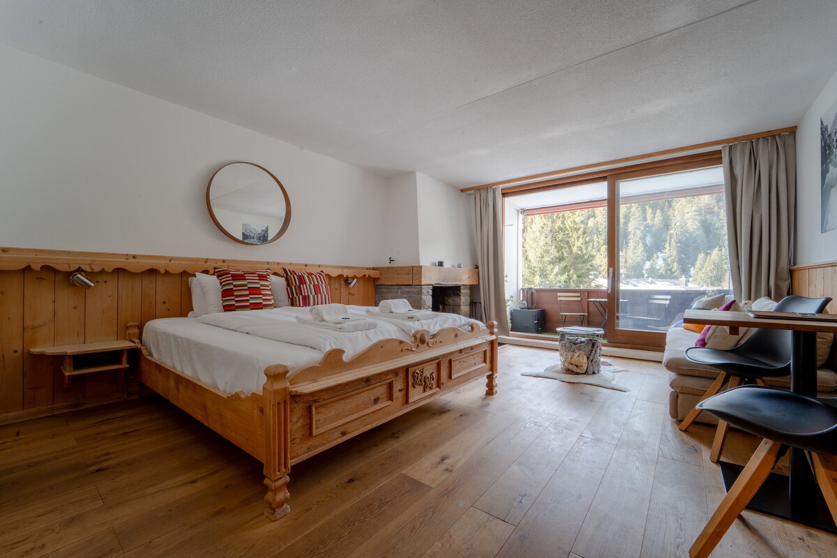 Entspanne dich in diesem einmaligen Rifugio. Im Jahre 2020 total sanierte 2 1/2- Zimmerwohnung, deren Interior Design komplett neu gestaltet wurde. Als Loft mit edelsten Materialien (Valser Granit, Schlossparkett, viel Altholz, freistehende Wanne, Eisenkamin auf zwei Seiten geöffnet, Designarmaturen) ausgebaut. Mit geschütztem Gartensitzplatz und Garten. Sonnige, ruhige Lage. Eigener Hauseingang, Sauna im Nebengebäude. Ski in, ski out oder Skibus in drei Minuten erreichbar.