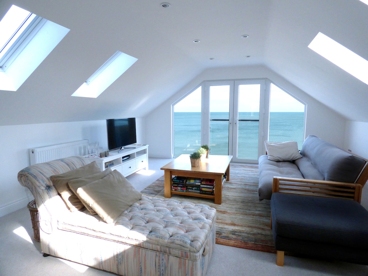 BeachFront Loft, Log burner, stunning views