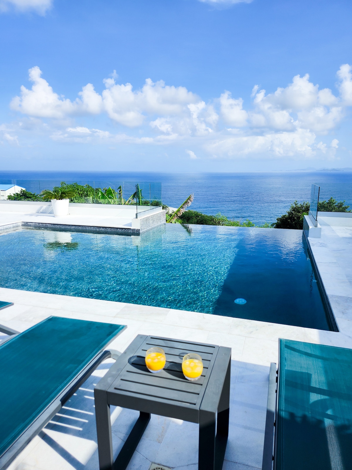 Enjoy stunning ocean view in a peaceful location free of traffic and crowds. Villa Seascapes is a fully renovated luxury villa with a 180 degree unobstructed ocean view, surrounded by a lush garden. 3 beautiful bedrooms 8 min walk to Dawn beach, bar and restaurant. Salt water infinity pool. Large terrace overlooking the ocean. Each bedroom has en suite bathroom, walk in closet and magnificent ocean view.