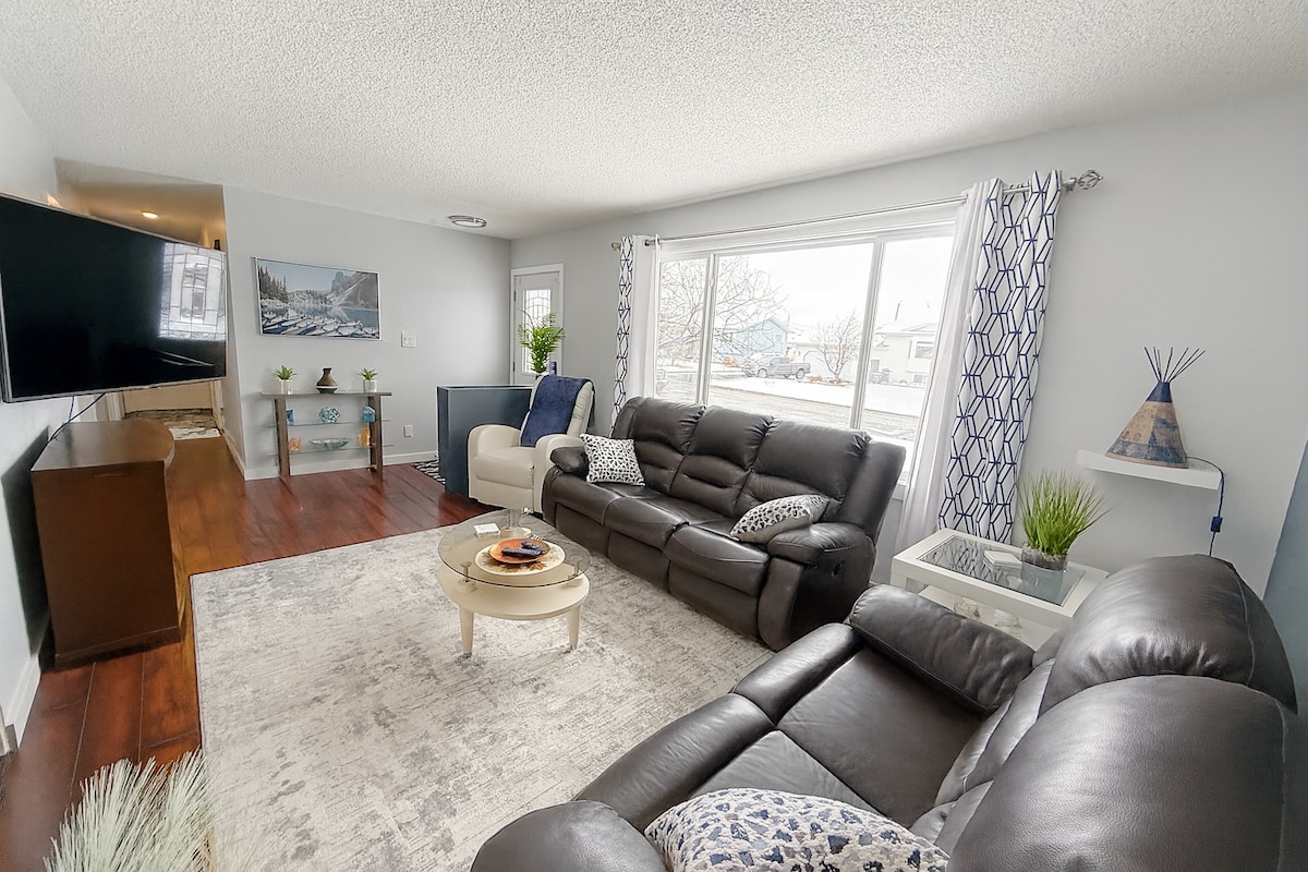 "A charming 3BR retreat in the heart of downtown Dawson Creek, nestled in a quiet neighborhood for ultimate relaxation and convenience. Enjoy keyless entry, ample parking, easy access to local attractions and services, and all the comforts of home waiting for you