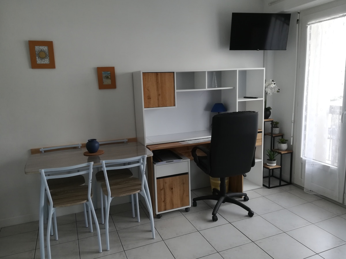 ♦ Animaux interdits ♦ Netflix, Amazon prime, Disney+ ♦ Fibre optique ♦ Place de parking privative ♦ Cilmatisation ♦ Propreté Charmant studio refait à neuf; Bien situé Déco soigné avec des matériaux de qualité; Tout équipé, clim, grande douche, lit double confortable, café... Grand balcon plein sud. Place de parking