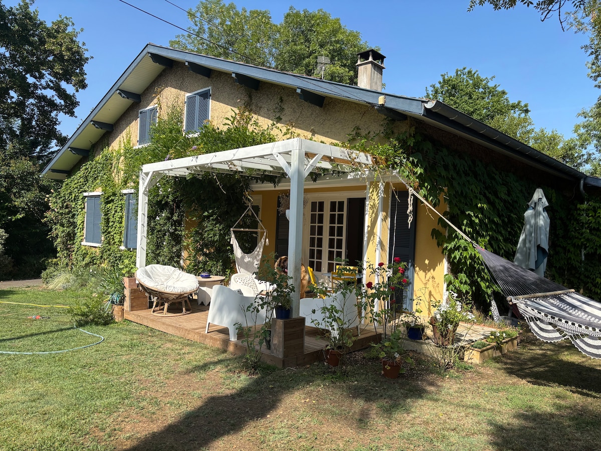 Bright 2 bedroom apartement of 54 m2 at the gates of Bayonne & Biarritz, 7km from the Atlantic Ocean, near the Basque Country, Landes beaches popular among surfers and Spain 40min by car. Bayonne railway station at 10min, airport at 20min. Bus to Bayonne, Biarritz and beaches. Quiet, ideally located, close to all shops, cinema and restaurants (- 3min by car). Located on the ground floor of our house, with private entrance and terrace, overlooking garden and forest. Hélène & Yves