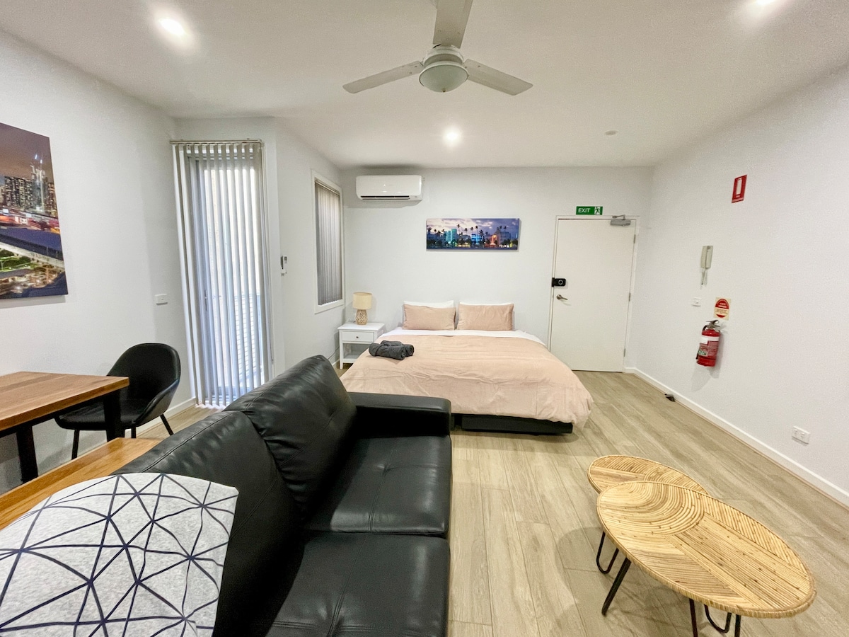 位于穆尼池(Moonee Ponds)中心地带的单间公寓-加大双人床