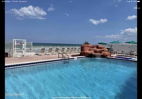 Enjoy our Heated indoor pool We are located on Daytona Beach a 1 minute walk through the pool area to be on the beach. With open pool Netflix Included, Experience our newly renovated King room studio, large balcony with amazing beachfront views it feels like you are on a cruise ship over the ocean. We have all kitchen items needed for cooking and we provide Coffee, cream, sugar .We provide all linens and towels and Beach towels and beach chairs.