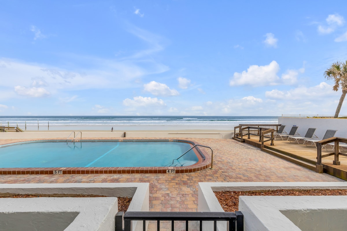 Come and enjoy your time away in this SMOKE-FREE, fully equipped, clean and modern oceanfront condo in Daytona Beach Shores. This condo building has a heated pool and brand new balconies! We have put indestructible Polywood chairs/side tables on our balcony for your use while you take in the phenomenal view from the 4th floor. The property also has tennis, basketball, and pickleball on the roof of the garage with an additional sun deck accessed from the second floor of the building.