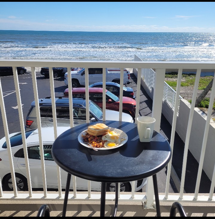 Charming and stylish studio, Queen size bed. 2 burner kitchenette. Spacious bathroom with supplies. This location is on Daytona beach, close to Ormond Beach. Near by is fabulous shopping, dining, and entertainment. The Studio faces the ocean. This is a direct ocean front studio. Indoor & outdoor north pool are currently open. Sauna and gym are open. We have beach access to the north side of the building via the public access ramp. Temp parking is next door, south side behind white fence.