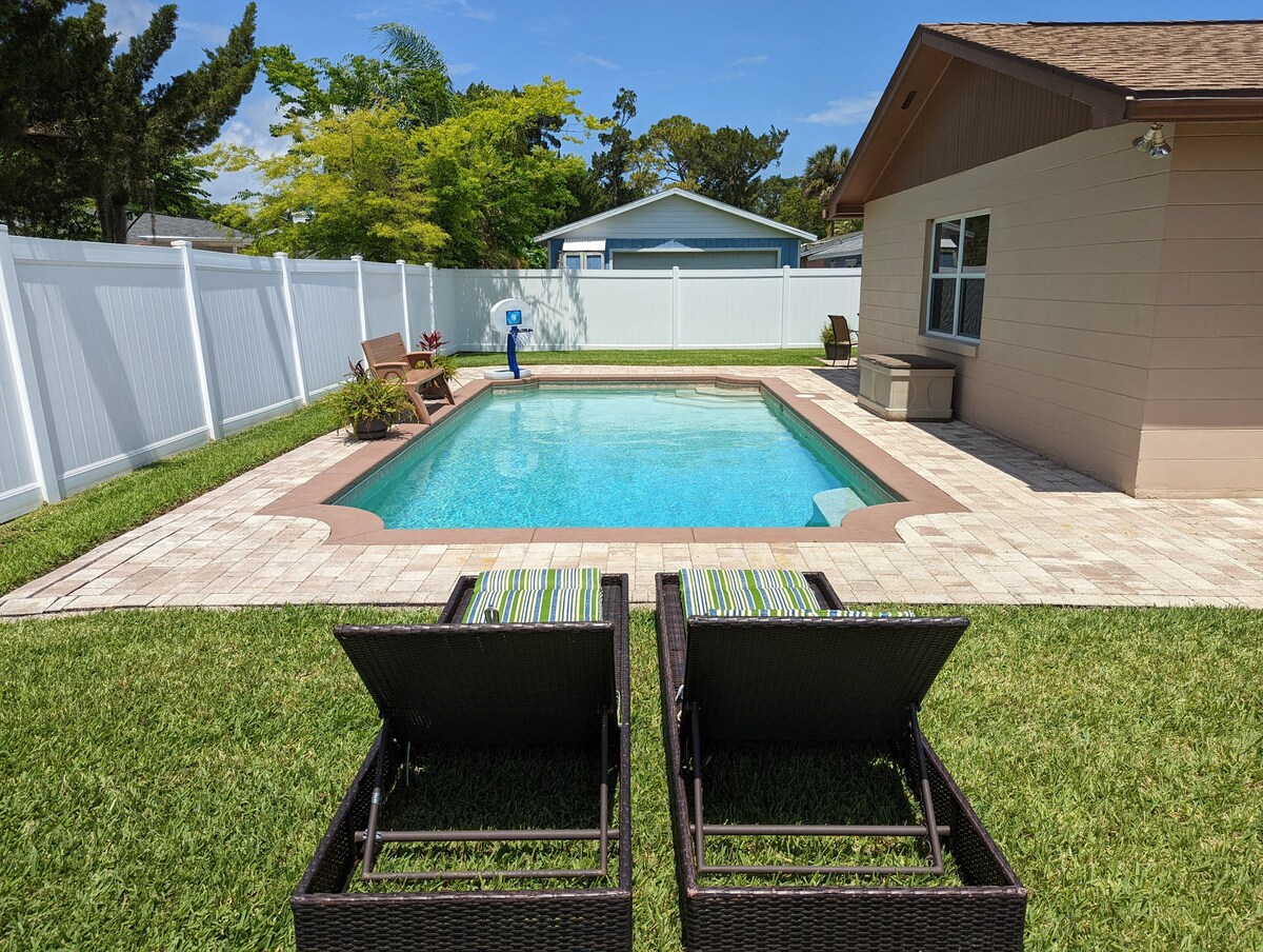Welcome to your tropical getaway in the heart of Daytona Beach! Located 3 miles from the beaches & 12 minutes from Nascar Speedway. This home includes a large swimming pool surrounded by a HUGE private yard, ping pong table, BBQ grill, 3 bedrooms, 4 beds, 2 bathrooms, & 1 premium queen airbed. Every room has Smart TVs & fast Wi-Fi (500 Mbps). Our fully stocked kitchen includes an air fryer, rice cooker, blender & more! Lastly, our quiet & safe neighborhood will ensure a peaceful stay 😎🌴