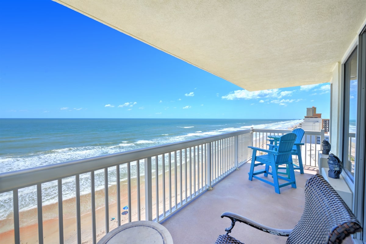 代托纳海滩顶层公寓。海滨阳台+游泳池