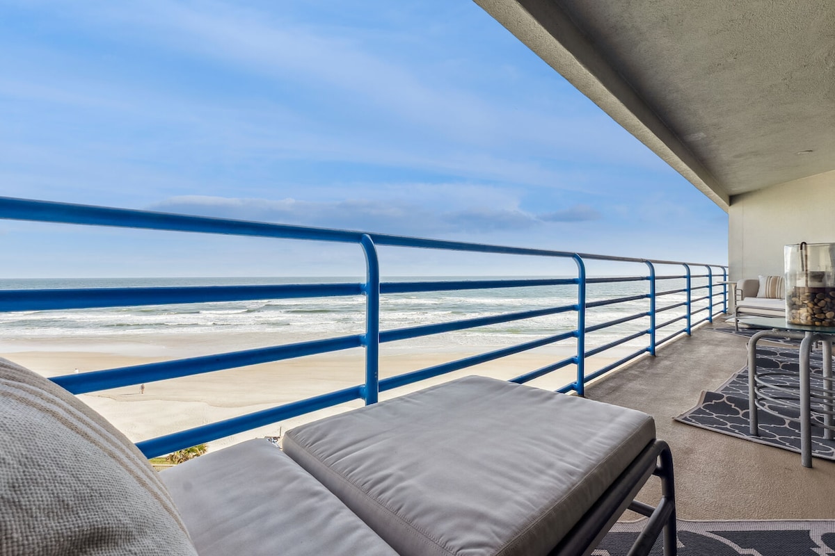 Just steps from the beach, this bright and spacious 2-bedroom, 2-bath direct oceanfront condo is your perfect coastal getaway. Wake up to panoramic ocean views, sip coffee on the large private balcony, and fall asleep to the sound of the waves. The condo is fully equipped including beach chairs and gear, washer and dryer, ultra-fast Wi-Fi, and free parking. Enjoy a newly renovated oceanfront pool, comfortable beds for up to six guests, and three large smart TVs for streaming your favorite shows.