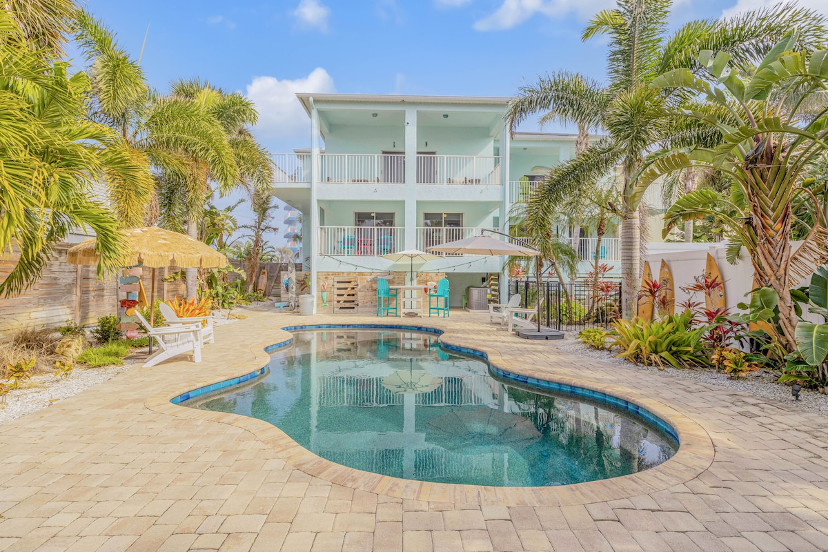 泳池、热水浴缸、600英尺海滩、电动车充电器、自行车、烧烤!