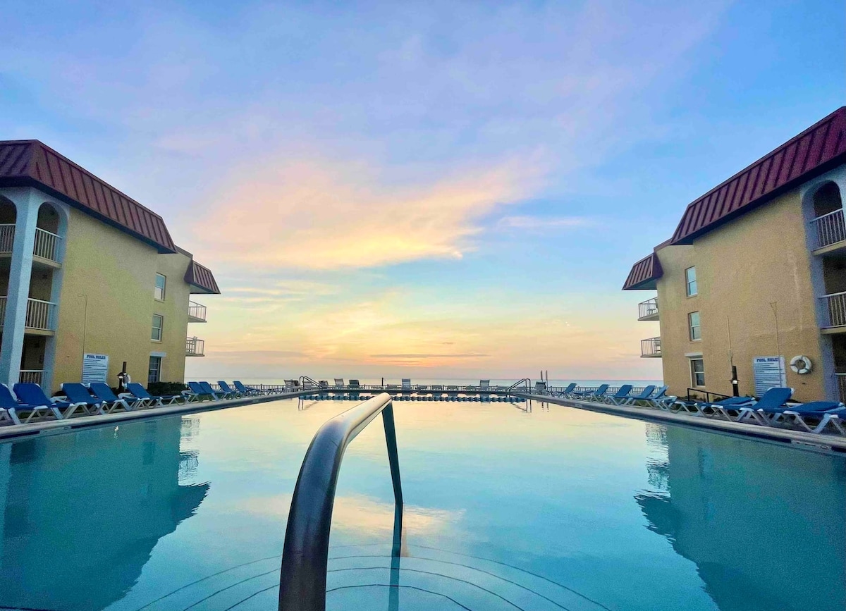 ENJOY AN AMAZING RESORT: Daytona Beach is a beautiful place to stay, Right in the heart of "the world's most famous beach, close to the sandy beautiful beach, it is a paradise. Very convenient Resort, right on the beach just minutes from shopping, eateries, Boardwalk Amusements, Ocean Walk Shoppes & pier. Kick back, relax in a calm, stylish space. Enjoy the Tiki bar, restaurant with live bands. Pool and hot tub on the ocean. Walking distance to plocal restaurants and attractions.