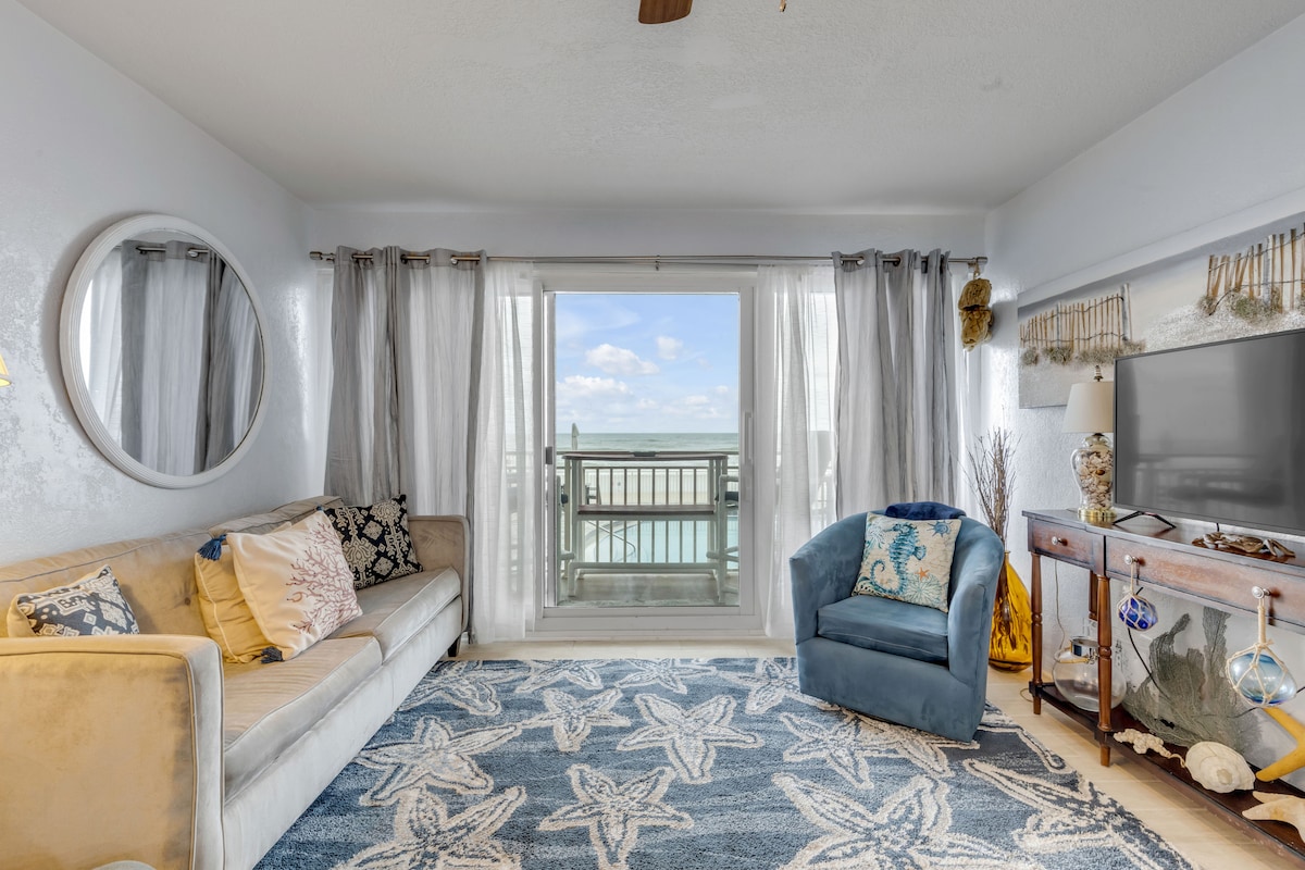 Welcome to your Daytona Beach escape! This oceanfront condo features a Queen-size bed, a queen-size sofa bed, and a full-size kitchen—ideal for a relaxing stay. Step out onto the pool deck with direct beach access and soak up the sun! Located less than 1 mile from the Daytona Beach Boardwalk, Main Street Pier, The Ocean Center, and Daytona Lagoon Water Park, you'll be close to amusement rides, arcades, shops, and famous restaurants. Book now for an unforgettable beachfront getaway!