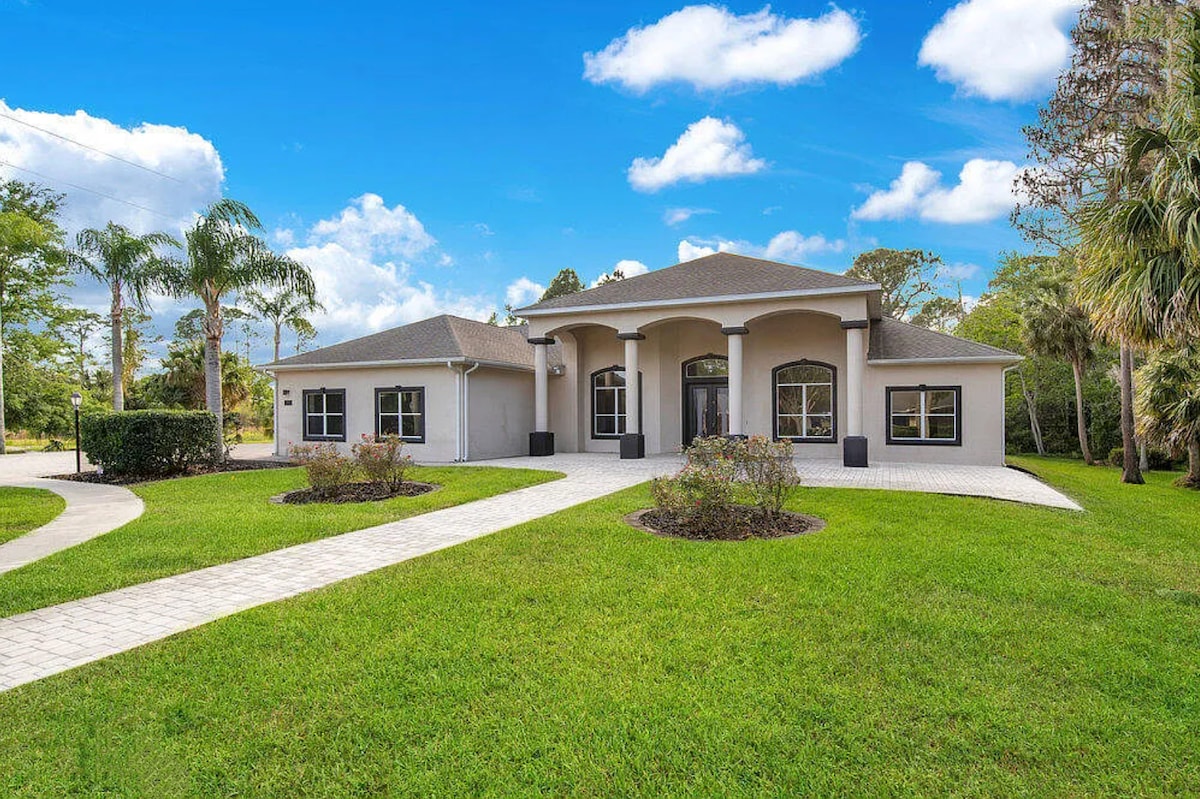 Farm life at its best! Located right next to our tree farm, bass stocked pond with dock on property, decor is Palm trees, Exotic Zebra farm life. There is a Chicken coop to feed chickens and gather eggs (if they are laying). Pasture with miniature Mediterranean donkey, ( Pablo) Zebra. (Ruby ) 1 miniature pygmi goats (Oreo), pig, (Georgia ) and a lamb (Grady ). I am a phone call away! 6 min drive physically. We also have a beautiful venue you can rent for a weddings or an an event.