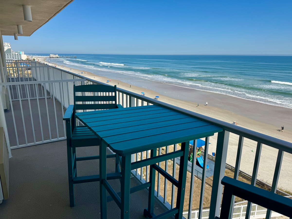 Oceanfront studio condo with a beautiful view. with wide shared balcony with seating. The current rate reflects ongoing storm-related repairs and closures of some amenities. Ideal for guests who value being close to the beach and ocean views over perfection and understanding the challenges. Some recently opened: **Open Amenities • 8:00 AM – 8:00 PM • One Outdoor Pool • Indoor Pool • South Spa • Fitness Center / Gym • Sauna **Primary guest registration with ID required through guest portal.