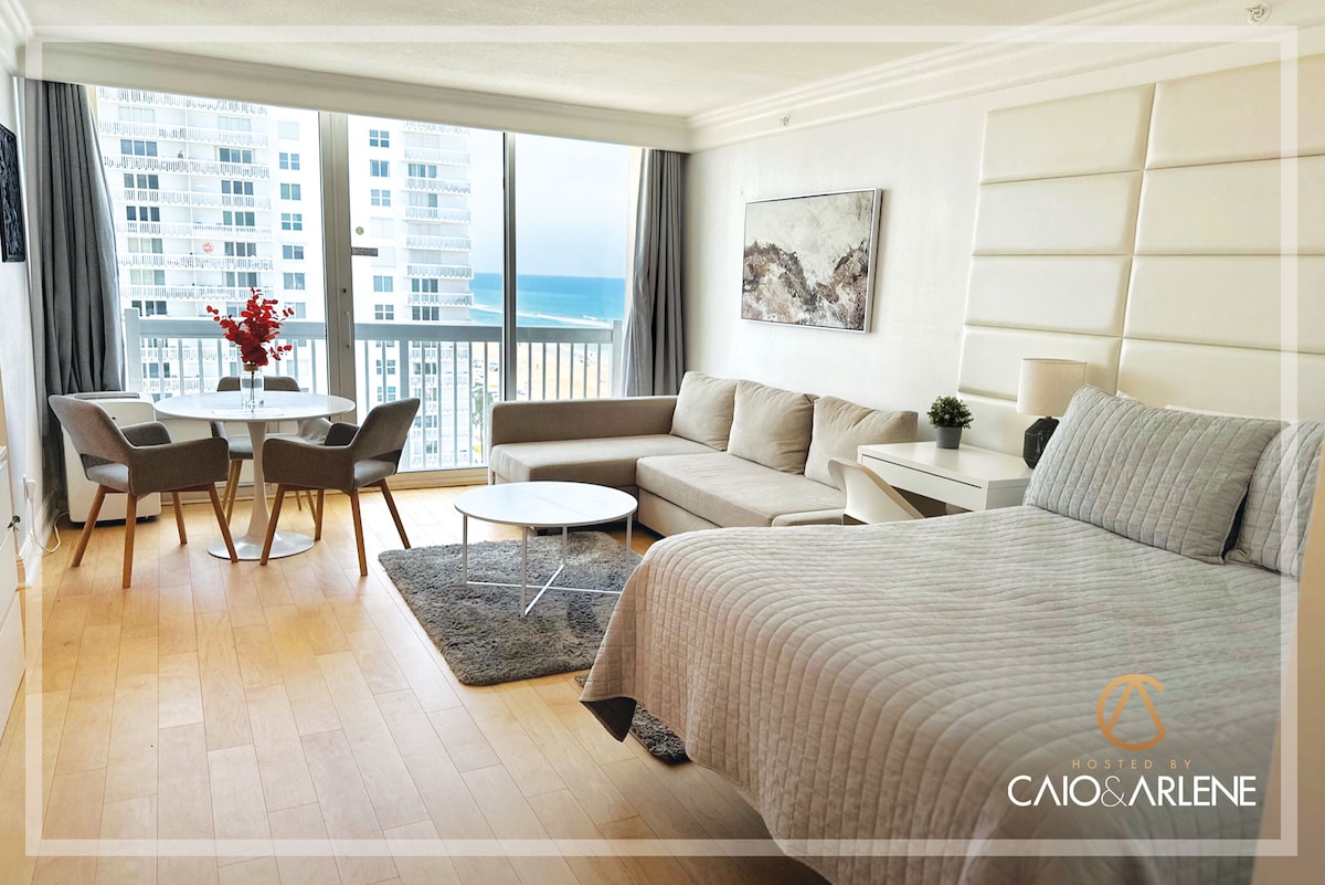 Weekend getaway. Time to rewind? Visit our oceanfront studio. We supply everything you will need! We have beach access, no damage, and an open pool! Safe, quiet building of only 33 units. The OCEAN is located directly in front of this comfy condo, with no roads to cross! This is a remodeled 2nd floor 389 sq ft condo at the Symphony Beach Club. Private balcony and full kitchen no need to leave the premises. This is a DIRECT OCEAN FRONT unit with an ocean view from your private balcony.