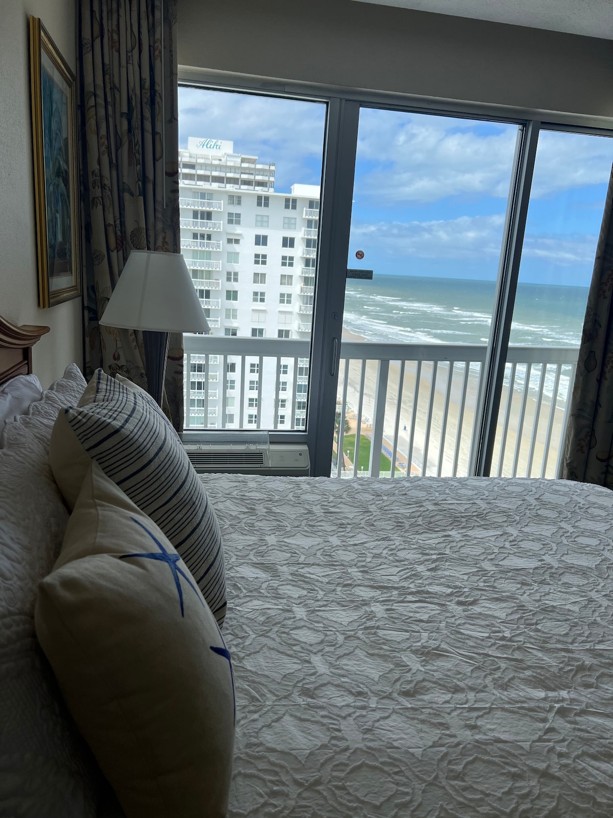 Bookings for oct into dec does not have balcony access, due to concrete repairs. rates are 60%off due to these repairs. mon to fri Netflix Included, Come Experience our amazing beachfront views in our beautiful newly remodeled studio in daytona beach located directly on the beach, it is like being on a cruise ship over the ocean. and a King Size Bed and full sleeper sofa we are walking distance to Great Restaraunts, all linens, towels, beach towels and coffee, creamer,and sugar.