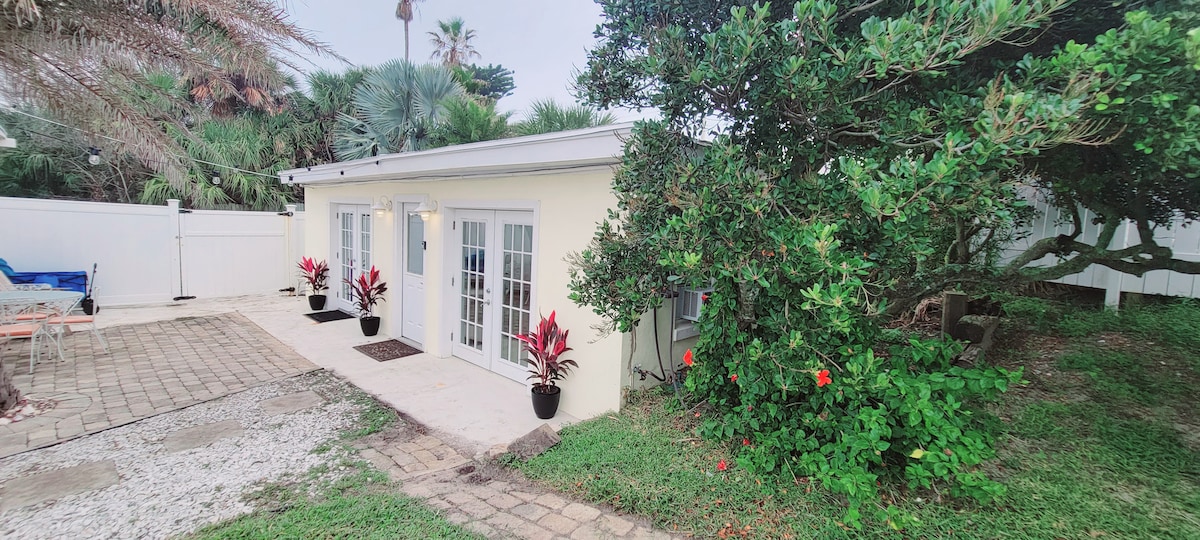 Historic beachfront apartment offers breathtaking views of New Smyrna. Enjoy this Cape Cod style home which has been divided into 3 units with a shared deck, fire pit and amenities. This upstairs "Surf Suite" boasts a king size bed, comfy pull out couch and the best view in town. Located in the heart of New Smryna, the Surf Suite is within walking distance to several restaurants, bars and shops. Enjoy the feel of "Old Florida" and the luxury of a truly beachfront experience.