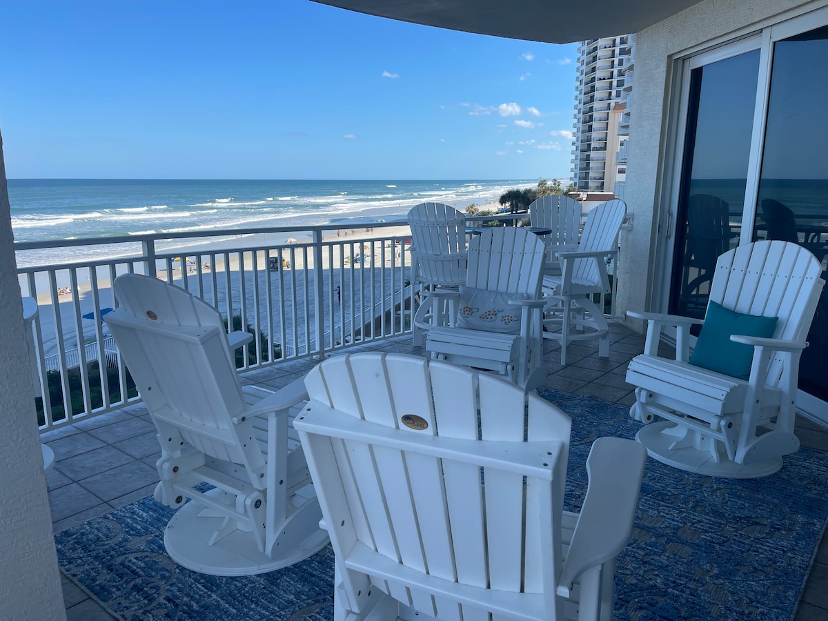 Enjoy our Beautiful open pool We are located on Daytona Beach a 1 minute walk through the pool area to be on the beach. With open pool Netflix Included, Experience our newly renovated King room studio, large balcony with amazing beachfront views it feels like you are on a cruise ship over the ocean. We have all kitchen items needed for cooking and we provide Coffee, cream, sugar .We provide all linens and towels and Beach towels and beach chairs lobby gift shop now open