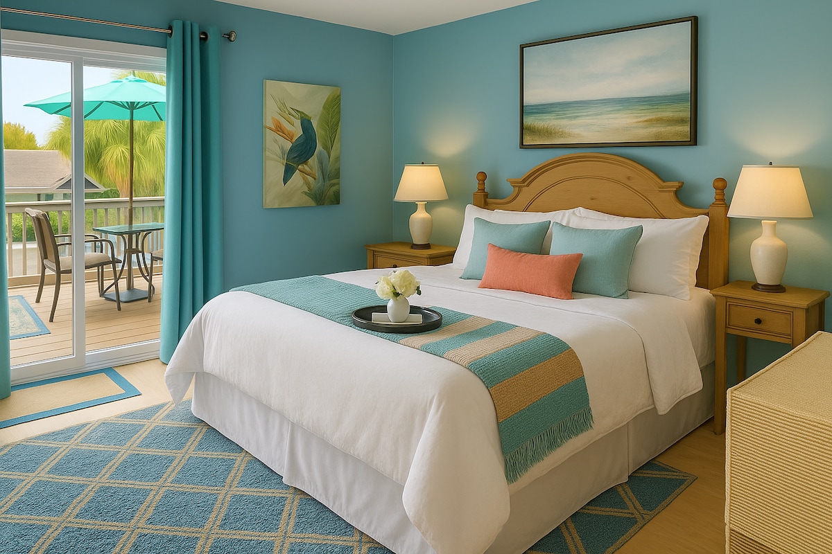 舒适公寓,步行3分钟到海滩,2单元,1卧/1卫/客厅/厨房