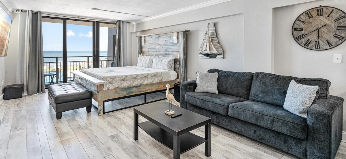 🏖️ DO-NOT-MISS THIS BEACH VIEW STUDIO! 🏝️ Stay in this beautifully renovated studio, featuring 2 queen beds on the main street of Daytona Beach! 🌊 With your own private balcony, soak in the stunning white sand views! 🏖️ ✨ Enjoy the convenience of restaurants and shops nearby! 🍽️🛍️ Plus, free parking and Wi-Fi! 🚗📶 ⚠️Please note: 🚫 🏊♀️The pool and amenities are temporarily closed due to ongoing renovations. ‼️Resort under renovation. ‼️ Balcony closed 🚫
