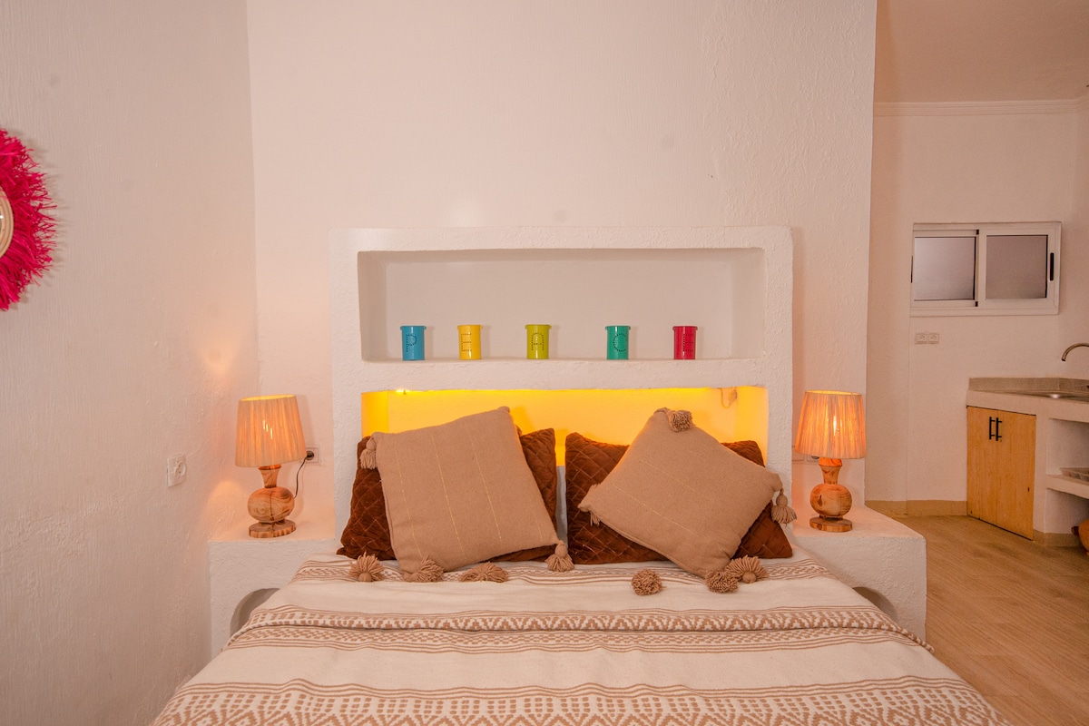 This dwelling is situated amidst upscale villas and features a private external entrance. It is located in a strategic area in Agadir, with banks just 20 meters away, cafes at 50 meters, a women's salon at 20 meters, and a grocery s. Accommodation Apartment Room House Resort Chalet Serviced apartment Short-term rental Vacation rental Booking Rent Beach City Mountains Park Heritage Tourist attractions Shopping center Airport Train station Amenities View Furnished