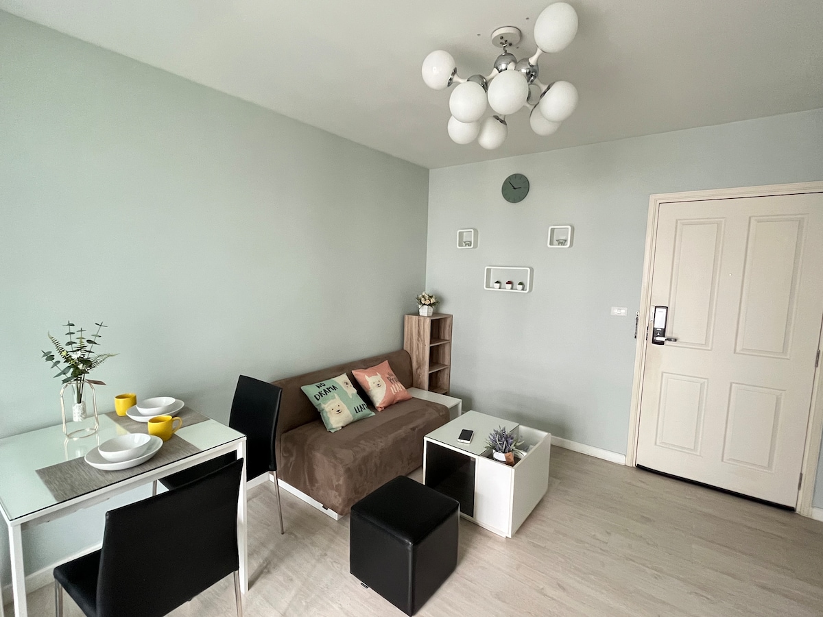 这处位于市中心的房源宁静安逸,让您回归简单的生活。房间布置浪漫而温馨!距离清迈最大商场Central Festival步行仅2 分钟。清迈移民局仅需2分钟.如果您不想步行还有免费的高尔夫车去Central Festival。有免费的漂亮泳池和健身房供客人使用!地理位置优越,社区环境优美,安保设施齐全,让您体验家一般的感觉!我们致力于让你疲惫的心在这里得到安慰,此时你最美好的样子乍现,这将是你在清迈的另一个家,我们也将成为家人一样的存在💖养足精力继续前行,无论如何都将是最好的你自己!🥰
