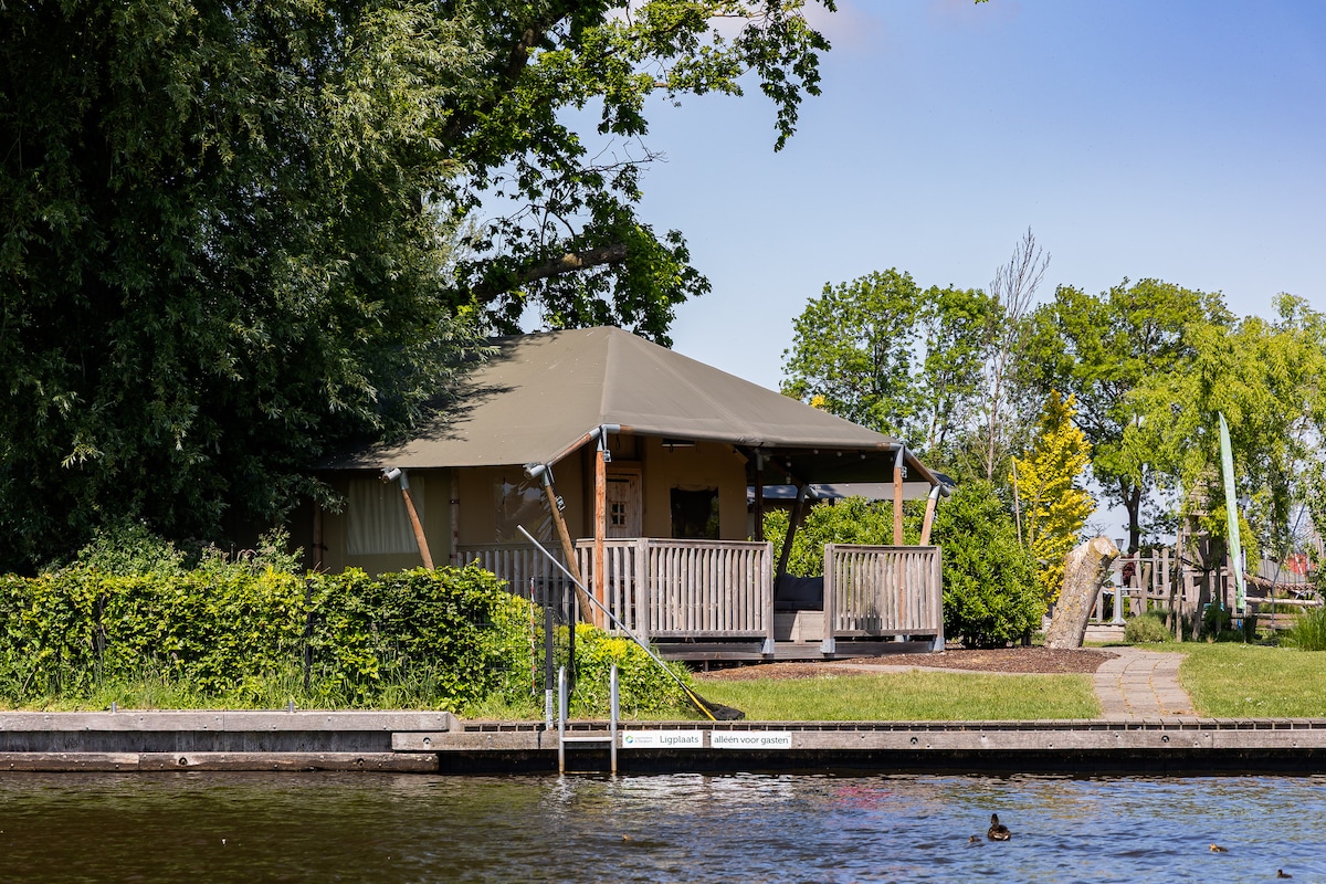 Experience the ultimate outdoor life in the atmospheric safari tent in the marina of Heeg, perfect for 2 to 4 people. This spacious and comfortable safari tent offers a beautiful view of the marina and the passing boats. From the terrace you can not only enjoy the water, but also the peace and nature. For a refreshing dip you do not have to go far, because you can swim directly in the marina or visit the beach, which is only a 10-minute walk away.