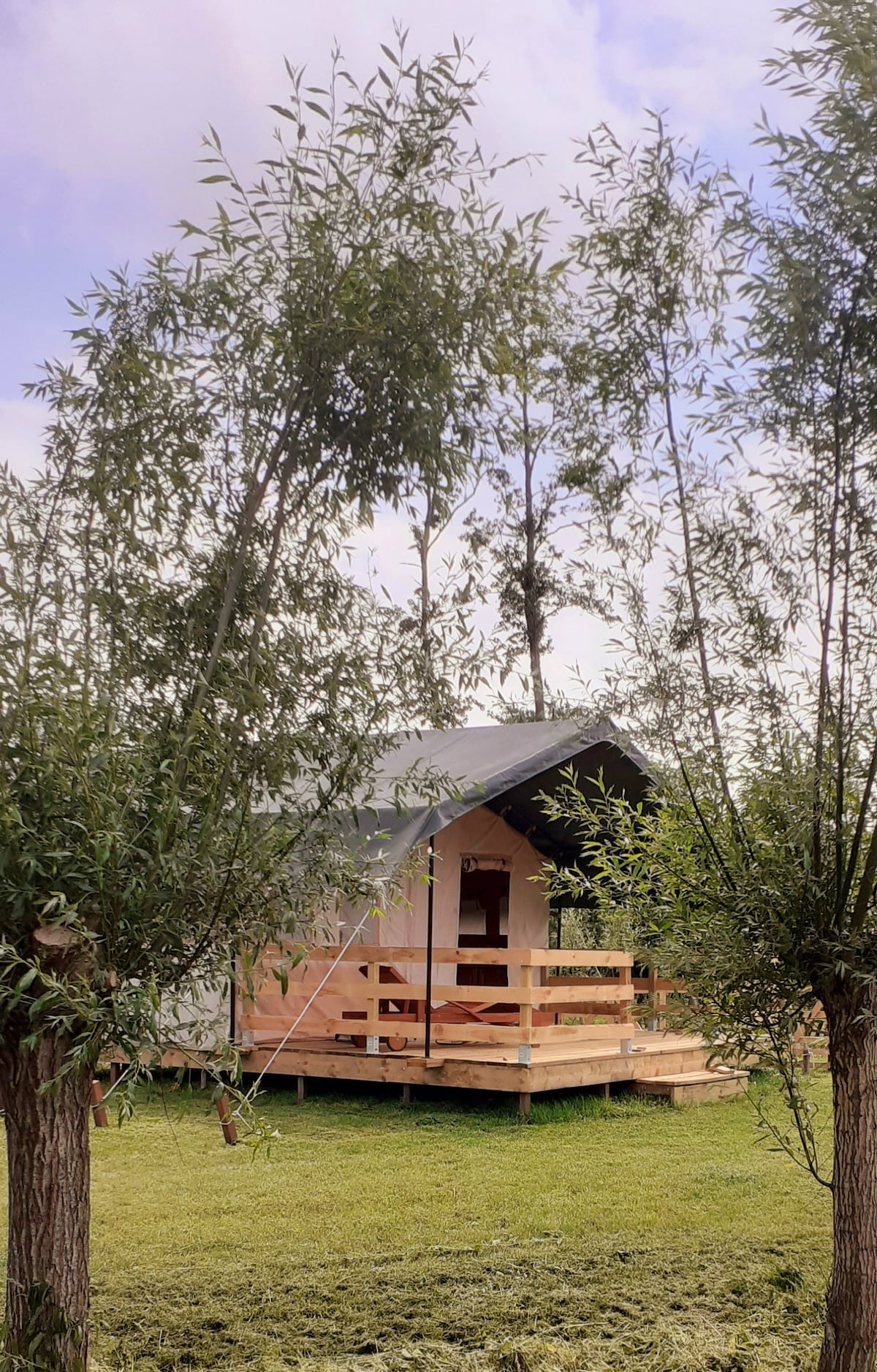 Ervaar het buitenleven in onze sfeervolle safaritent met weids uitzicht over het platteland. De tent is volledig ingericht met een comfortabel bed, zithoek en overdekt eigen terras. Geniet van de natuur, ontbijt in de zon en ontdek de omgeving te voet of per fiets. ’s Avonds relax je bij de barbecue of onder een sterrenhemel. Ideaal voor wie houdt van comfort, sfeer en een unieke glamping-ervaring. Het zoet water strand is op slechts 500 meter afstand.