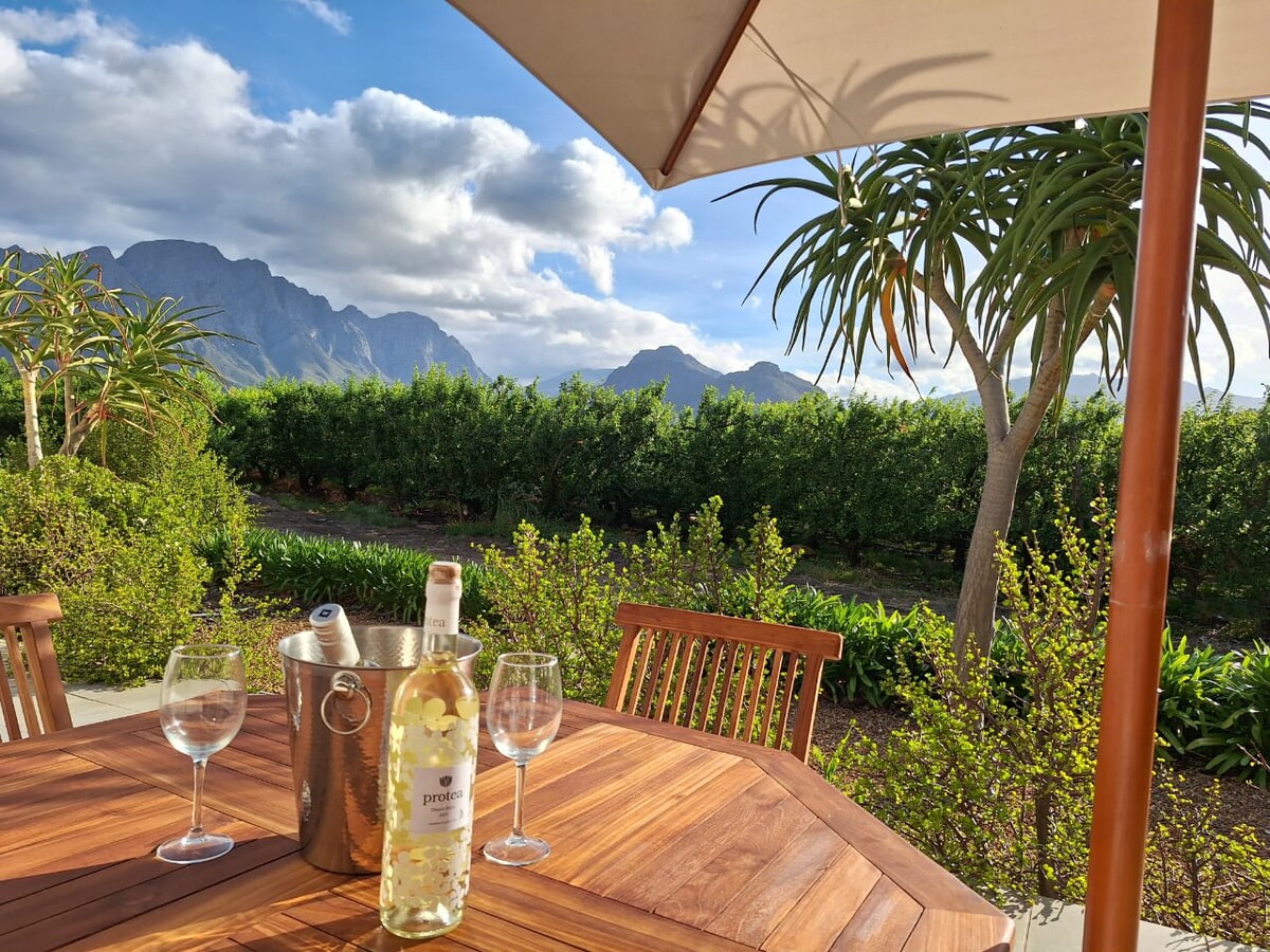 Greet the day with breakfast before marvelous mountains and countryside views from the sunny balcony. From its vaulted, wood-beam ceilings and country-chic decoration, to its brick-fronted fireplace, this placid hideaway glows with idyllic charm. Set on 2 hectares of beautiful gardens, with fruit trees, vineyards & surrounded by mountains. Sip a glass of chilled wine and enjoy the beautiful sunsets from the large balcony with one of the best views! Cool off in the dipping pool and relax in the tree shaded pool area or on those wet winter days curl up next to the indoor fireplace. Property is gated, guest have there own access and free to roam the property. We like to give guest there own space, however either myself or a staff member are always available and happy to help. Nestled between towering mountainscapes and enduring vineyards, this property is situated in Franschhoek, a town known for its world-class dining, wine tasting, and natural beauty. Visit the Huguenot Memorial Museum to learn about local history. Uber is recently available in Franschhoek but does have a limited presence (after 11pm/12pm). There is also a tuk tuk taxi available, please view enclosed information for contact. Please note there is a friendly young rescue dog that roams freely on the property. Nestled between towering mountainscapes and enduring vineyards, this property is situated in Franschhoek, a town known for its world-class dining, wine tasting, and natural beauty.