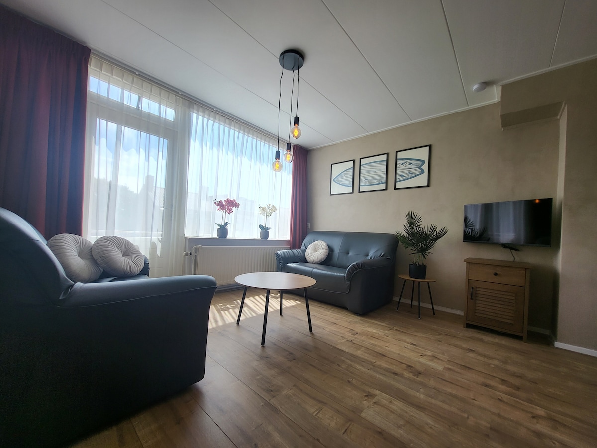 The completely furnished apartment from Enjoy Texel is within walking distance of the beach, restaurants, shops, dunes, bicycle and hiking trails. It's located in a quiet residential area. Easy accessible by car and public transport. A parking space is available on the driveway. Attention the apartment is situated on the second floor and had sloping walls. You can see them on the pictures. In the apartment ar no childern aloud.