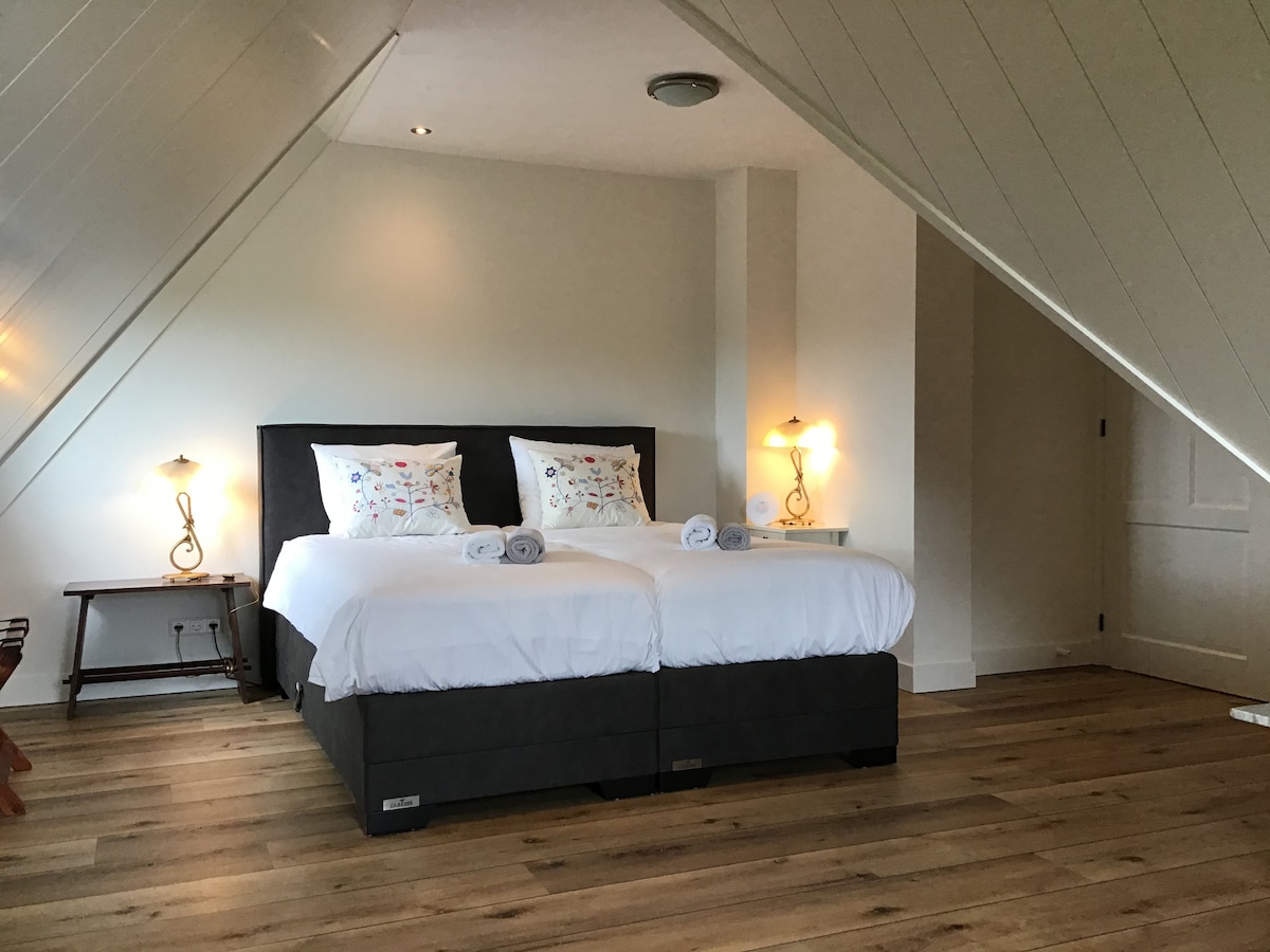 Noordwest8 You will stay in a spacious room in a beautiful environment with views of the sea, beach and dunes. The private bathroom, with shower, sink and toilet, has recently been completely renovated. The table on which we serve breakfast, is also very suitable as a desk, in the event that you are staying with us for work in stead of vacation. When the weather is nice you can have breakfast on your own terrace, or relax at the end of the day with a drink.