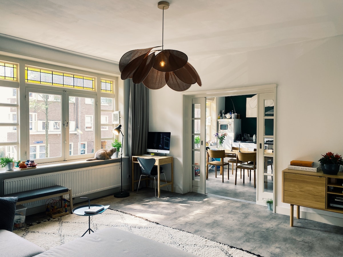 Luxurious apartment with terrace, located in one of Amsterdam's most desirable areas. This flat is housed in an authentic old Amsterdam building on a charming street in the beautiful De Pijp neighborhood. De Pijp is a lively area brimming with local Dutch culture. The flat is a short walk from Heinekenplein, Museumplein (Van Gogh Museum, Banksy Museum, Rijksmuseum), Amsterdam canals, Sarphatipark, numerous boutiques, bars, restaurants, the Albert Cuyp market, supermarkets, and bike rentals.