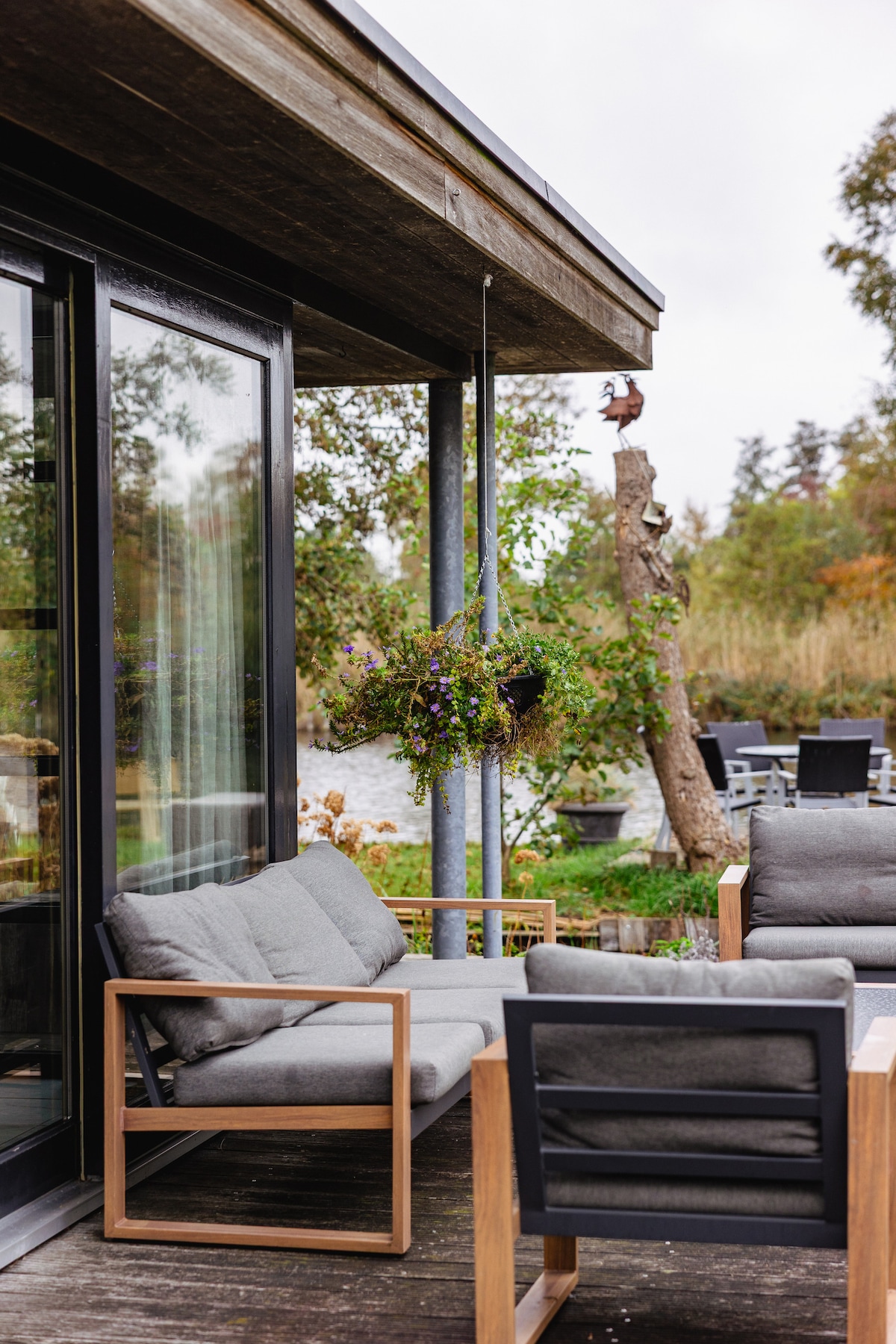 Situated on crystal clear water, you will find peace and fun for the whole family here in both summer and winter. Explore the natural surroundings by boat, bike or on foot. After barbecuing, paddle a round on your SUP through the beautiful villa district and watch the sunset from the water. In the winter, you can sit comfortably with your hot chocolate by the fireplace and play board games. At the end of the day, you can flop down satisfied in the hanging chair in the sunny conservatory.
