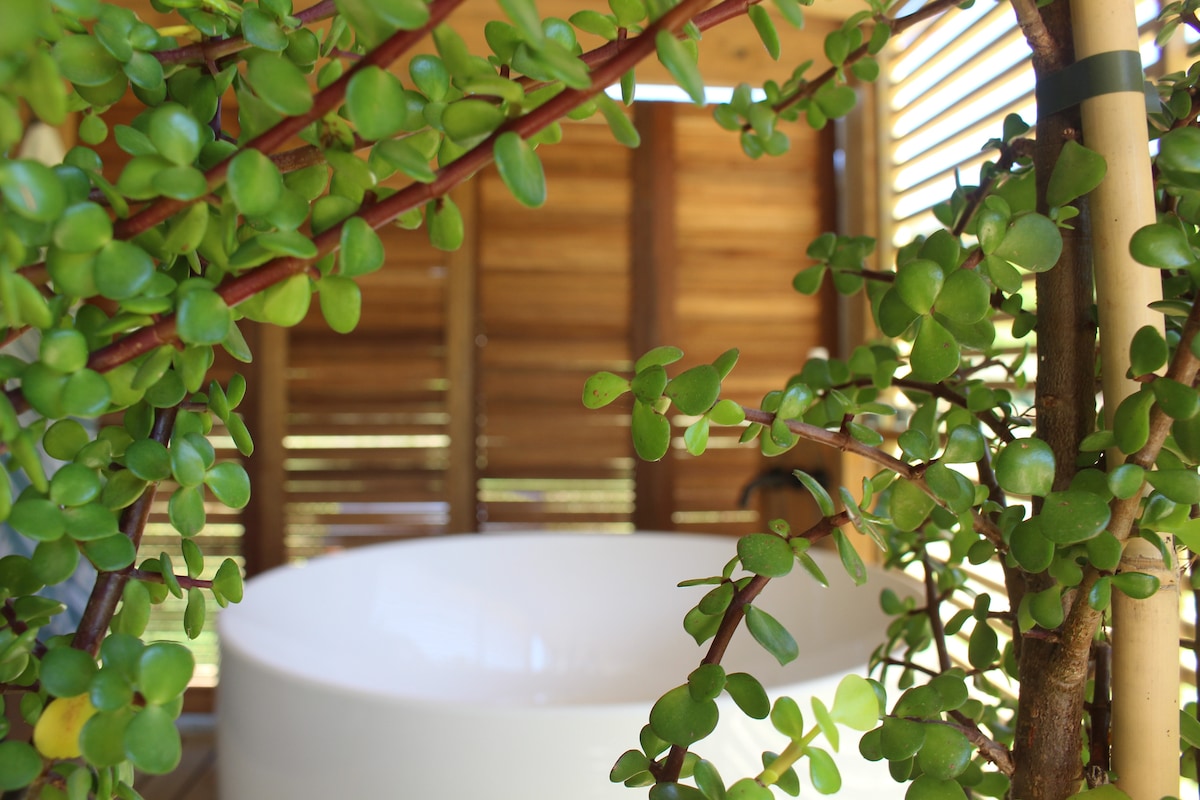 带泳池和露天浴缸的浪漫小屋!