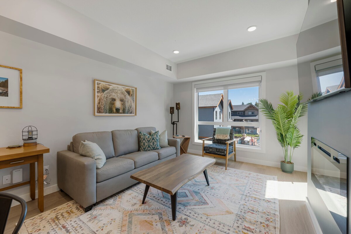 Spacious & Private Luxury Condo. This craftsman built complex boasts 3 private two-bedroom units, perfect for groups wanting their own space for a vacation, or to rent a unit individually. Picture yourself immersed in chic European styling with panoramic views of the rugged Canadian Rocky Mountains. Walk to restaurants, bars and shops downtown, or hop in the car for an easy 15-minute drive to Banff. Dog-friendly, so bring Fido along!