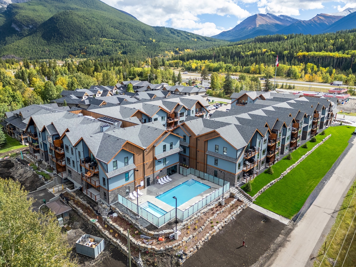 全新1卧室坎莫尔(Canmore)度假屋:热水浴缸、桑拿房、健身房