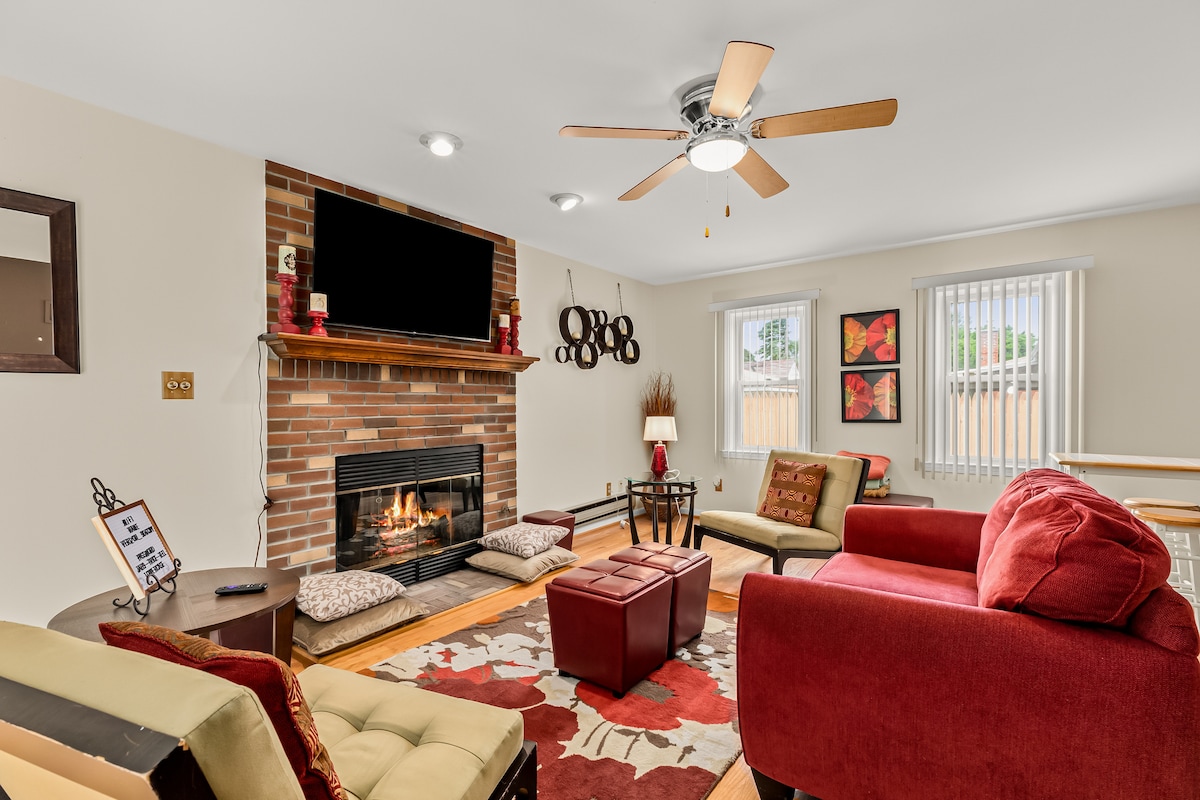 Stylish ranch. Sits on a quiet one way street just a few minutes from Detroit. High speed wi-fi and 55 inch smart TV. Spa-like bathrooms, deep soaking tub, mood lights, 2 person shower and Bluetooth speakers and towel warmer. His and Hers bathrobes. Full wetbar and stocked bar fridge. Stainless steel washer and dryer with all the supplies. 2 bedrooms, brand new Queen mattresses and linens. Towels and other linens also available. Pack and Play, large dog kennel on site. Iron firepit and chairs.