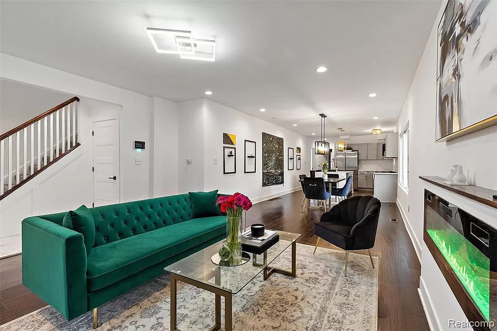 Top-floor penthouse in Brush Park inside Detroit’s iconic Lumber Baron’s Mansion. 2,500 sq ft with skyline views, 3 bedrooms (2 kings + 1 queen), 2.5 baths, and an en-suite workspace—sleeps 6. Free on-site parking included. Part of the Lake City Flats (LCF) collection: smart-lock check-in, hotel-quality linens, and fast local support. Minutes to Downtown, Midtown, DIA, stadiums, Fox Theatre, and Bar Pigalle across the street. Curated art, soaring windows, streaming TVs and a stocked kitchen too.