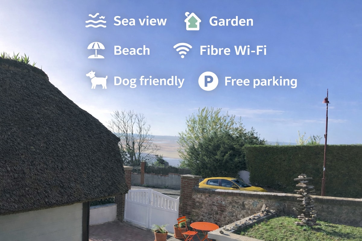 🏠 Charmante petite chaumière avec jardin offrant une vue mer. Idéalement située à deux pas de la plage de Houlgate et du centre-ville. Aménagée avec soin, elle propose des prestations de qualité pour un séjour confortable et chaleureux. 🛜 Connexion fibre haut débit disponible, idéale pour pour le télétravail ou le streaming. 🐾 votre compagnon à quatre pattes est le bienvenu. 🚗 Le stationnement dans la rue devant la petite chaumière est gratuit.