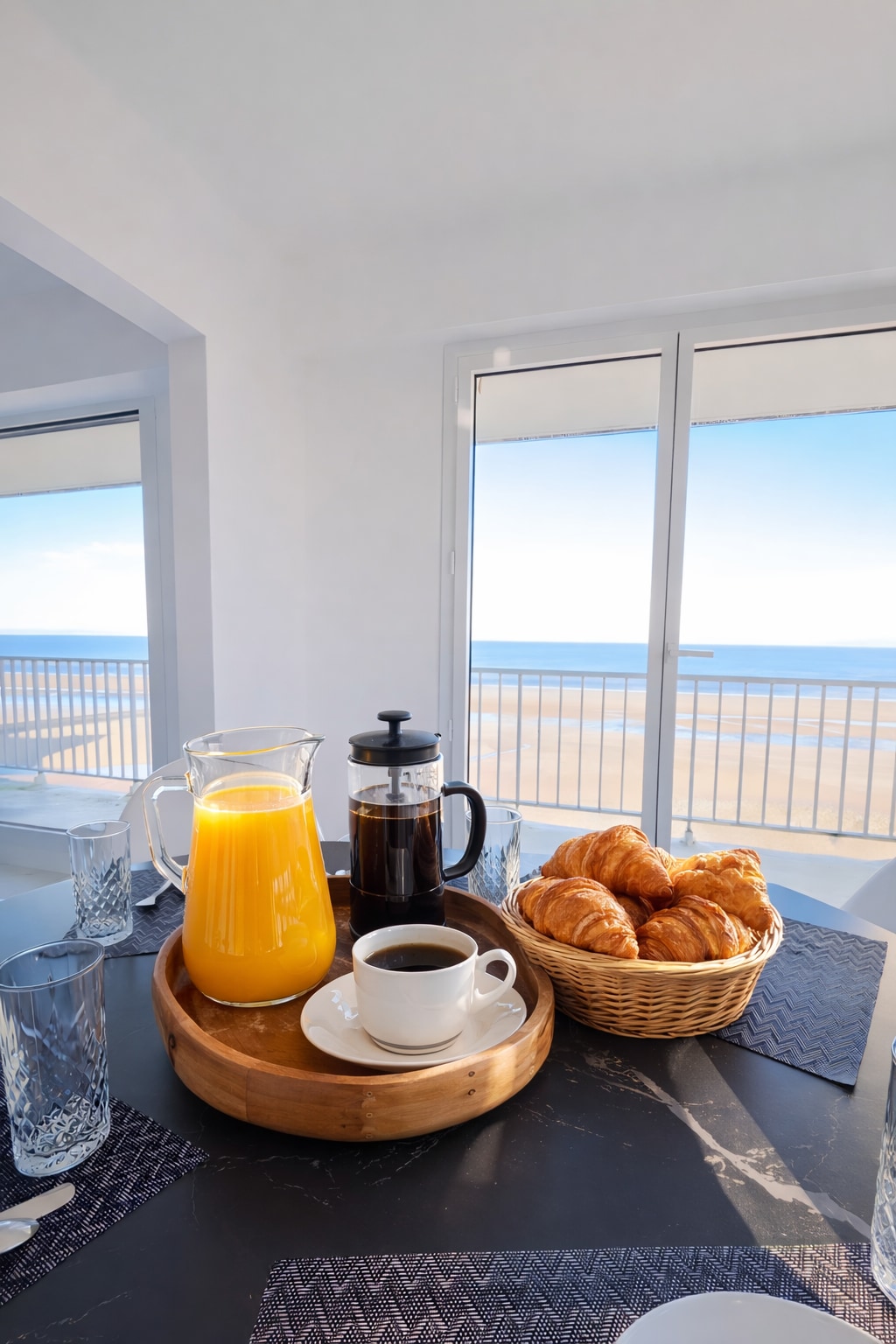 Appartement spacieux sur Mer - 1 Chambre avec terrasse - Salon avec véranda et terrasse, vue panoramique sur toute la côte. Plein Ouest - Cuisine aménagée - 1 SDB avec douche + WC 5ème et dernier étage avec grand ascenseur Tout confort, tout équipé, rénové Linge de maison en option WiFi, TV Animaux de compagnie tolérés (frais de ménage additionnels) Non-fumeur (ok grande terrasse uniquement) Fêtes et soirées interdites Parkings PUBLICS gratuits et commerces à proximité