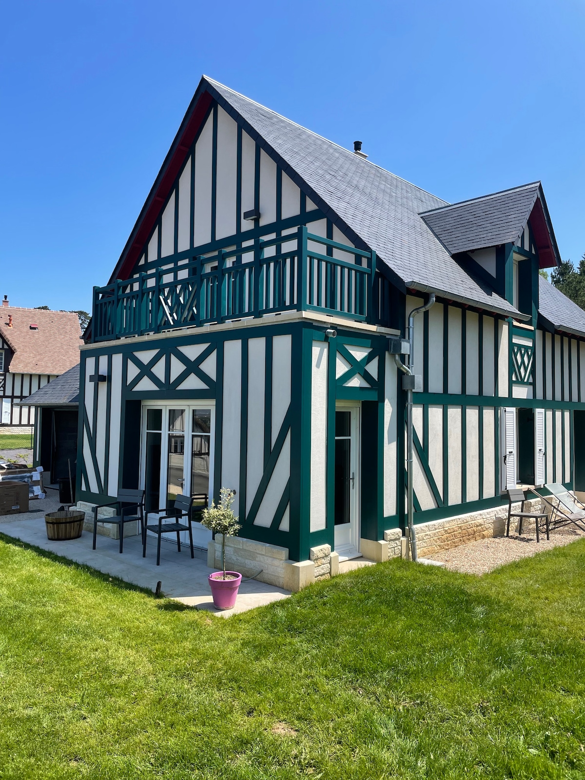 Discover Maison Melrose, an elegant Norman house in the heart of the private Maisons H Normandie estate, perfect for 8 guests. Located just 10 minutes from Deauville, Trouville, and Honfleur, this 4-bedroom, 4-bathroom home combines comfort and Norman charm with a furnished terrace, private garden, fireplace, fully equipped kitchen, and access to a heated pool (April to September), a game room (ping-pong, foosball, basketball arcade), and a playground (treehouse, slides, swings).