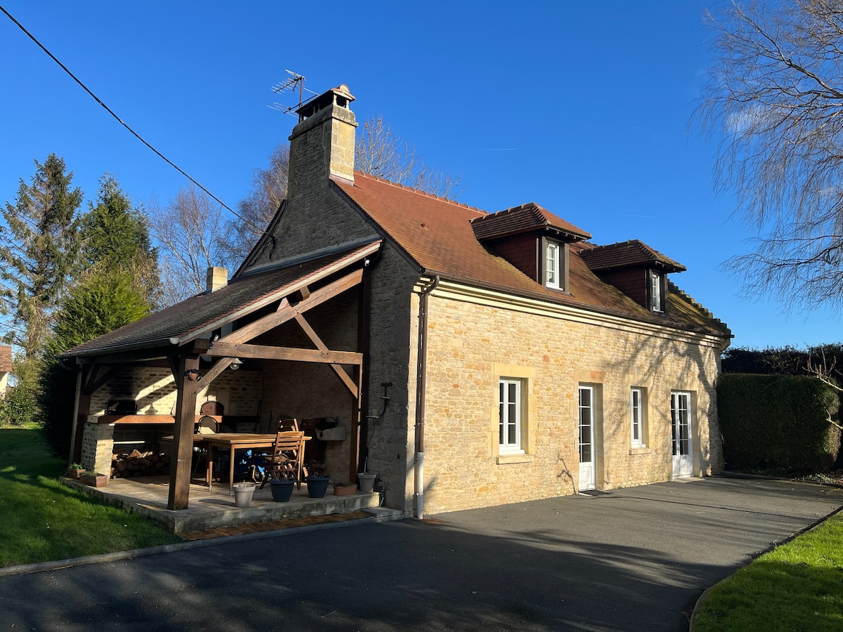 Charmante maison normande, rénovée avec beaucoup de gout. J'aime beaucoup la décoration, la maison est rénovée mais j'ai gardé le maximum de matériaux anciens. Attendez vous à un voyage dans le temps, avec le confort moderne. Grand jardin avec piscine chauffée à 28 degrés, la piscine est ouverte d'avril à septembre selon la météo . La plage est à 15 minutes à pied. Un grand séjour confortable vous permettra de profiter de votre voyage. Une salle de billard est à disposition à l'étage.