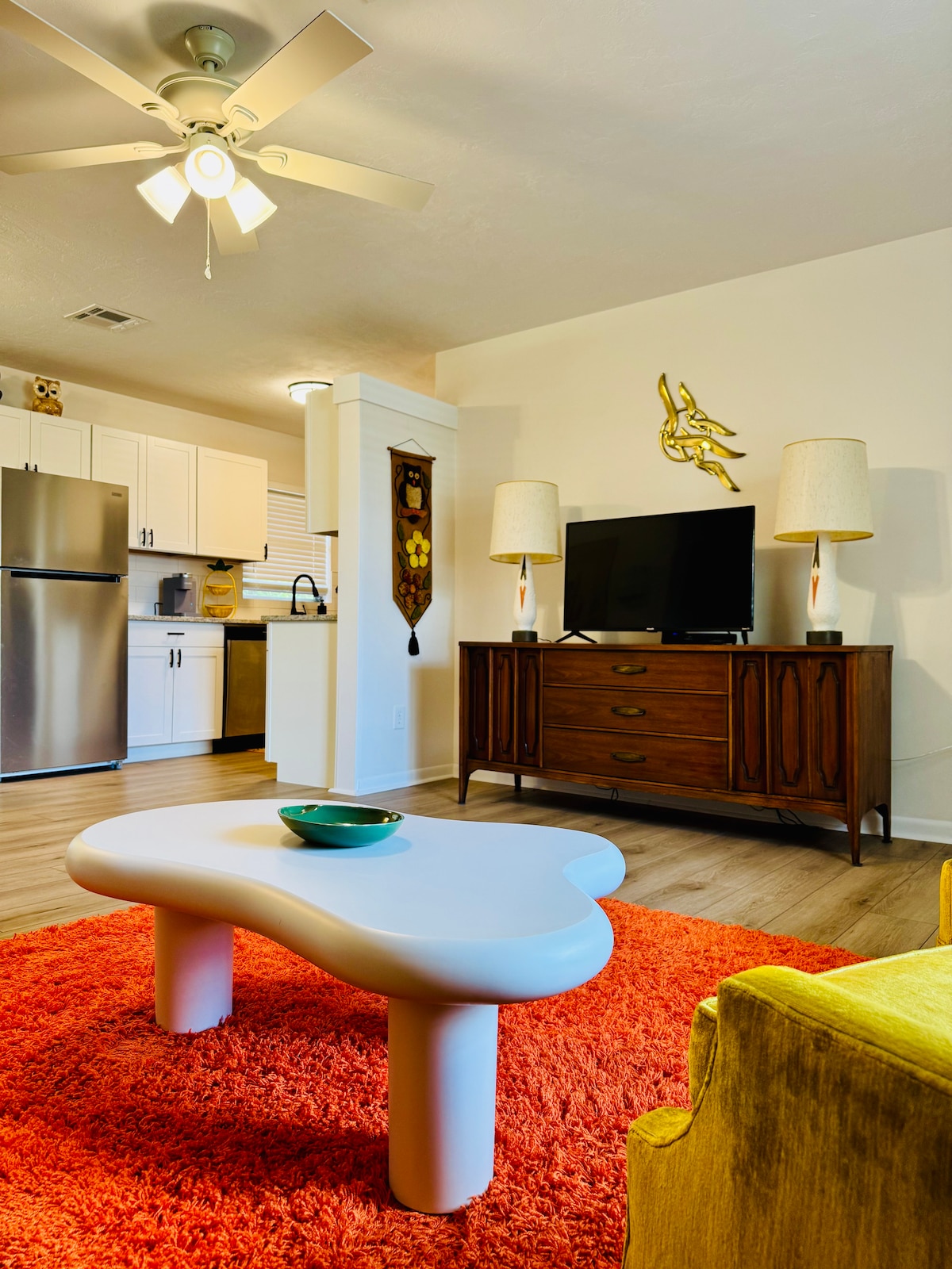 The residents of historic Sanford call themselves “Bokeys”. No one is sure of the exact origin of the name, but it has come to define the vibrant culture of Sanford’s people and unique historic charm. Welcome to the Bokey Pokey! This home away from home offers comfortable living space with two bedrooms and one bath. Each bedroom has a comfortable queen size mattress. A separate living room with a large wall mounted smart TV, abuts the fully stocked kitchen to provide a cozy like living space.