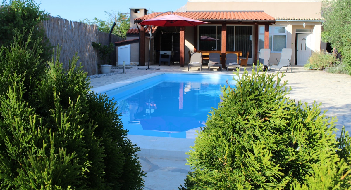 Moderna villa smještena u mirnom mjestu Debeljak, samo 10 minuta od Zadra i plaža, Villa Carmen nudi savršeno utočište za obitelji i prijatelje. Uživajte u privatnom bazenu, velikoj terasi za sunčanje, roštilju, potpunoj privatnosti i prostoru osmišljenom za opuštanje.Mirno okruženje, a opet blizu Zadra i atrakcija ✔ Idealno za obiteljski odmor, proslave ili romantične večeri uz bazen ✔ Besplatan Wi-Fi, 4 klime, perilica sa sušilicom,besplatan privatni parking. Ograđeno dvorište u cijelosti.
