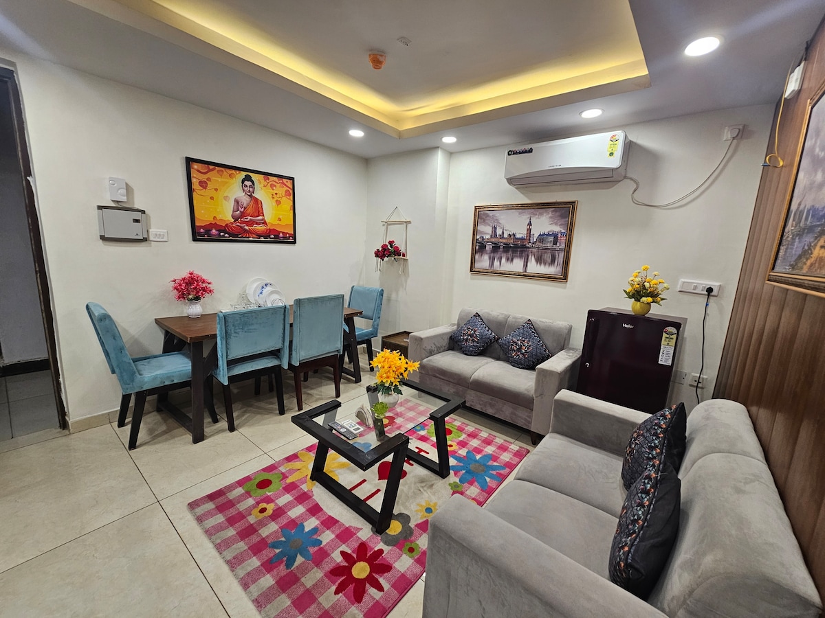 Dogri Homes 3 offers a cozy, fully furnished stay in Zirakpur with modern interiors, comfy bedrooms, and a well-equipped kitchen. Ideal for families, business travelers, or couples, it features high-speed Wi-Fi, , and a peaceful work-friendly space. Located near Chandigarh Airport, bus stand, and malls, it ensures easy access to essentials. Clean, safe, and welcoming – your perfect home away from home.