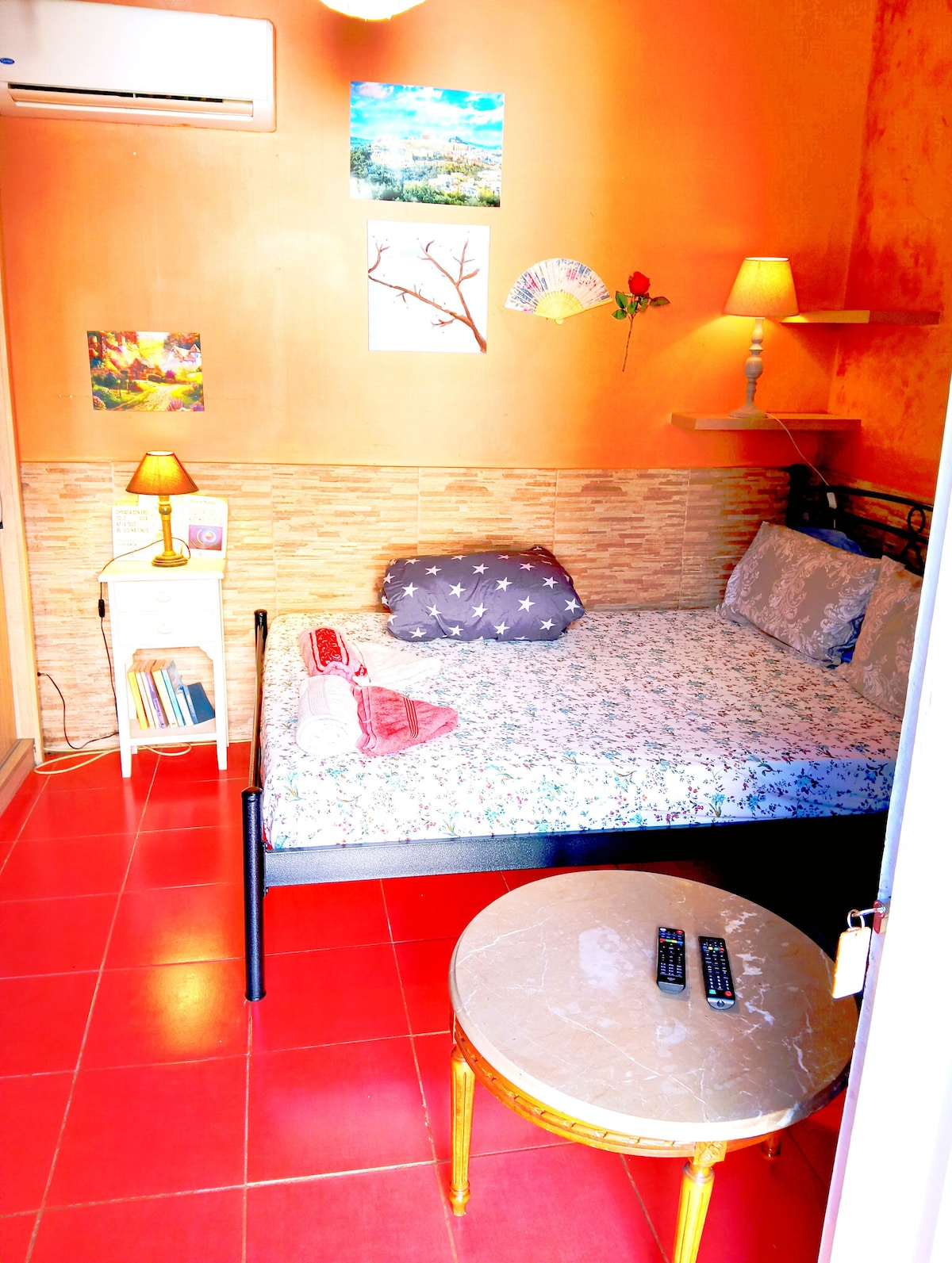 A 70sqm house with a bed room, livingroom with fire place, kitchen and w.c with shower. It is located in a cottage of 4.300 sq meters full of olive trees. It is propter for a couple and 3 children or 3 persons and 1 child, or 4 adults. Iti is a relaxing place. In the village and the places around, anyone can ride bicycle and enjoy walking. You can reach the Monastery of Agios Nektarios walking in about 30 minutes.